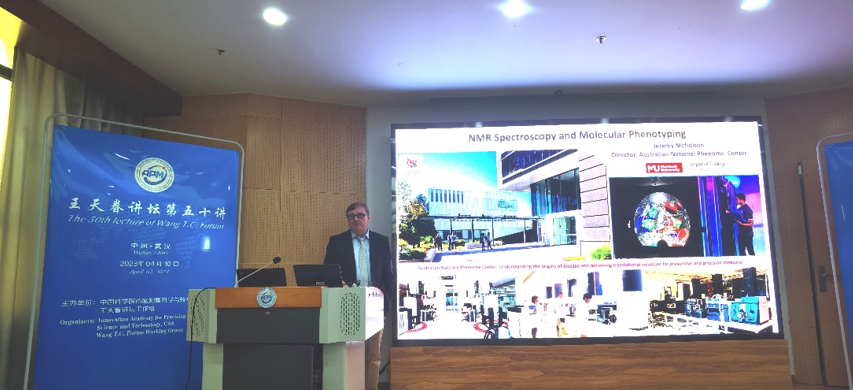 Nicholson教授为大家做了题为“NMR波谱与分子表型”的报告。报告会上,Nicholson教授第一时间介绍了澳大利亚国家表型组研究中心(ANPC),并介绍了基于NMR和MS的代谢组学分析方法及其在分子表型和人类健康中的应用。随后介绍了代谢组学在生物标志物发现、环境毒理、人类代谢表型、肠道菌群与代谢、外科手术(iKnife)中的最新应用,并着重介绍了NMR在新冠病毒导致的患者代谢改变和脂蛋白研究中的具体应用。